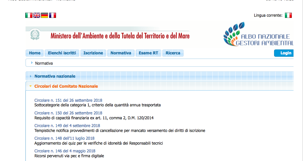 Circolari Albo Nazionale Gestori Ambientali n.150 e n. 151 del 26 settembre 2018
