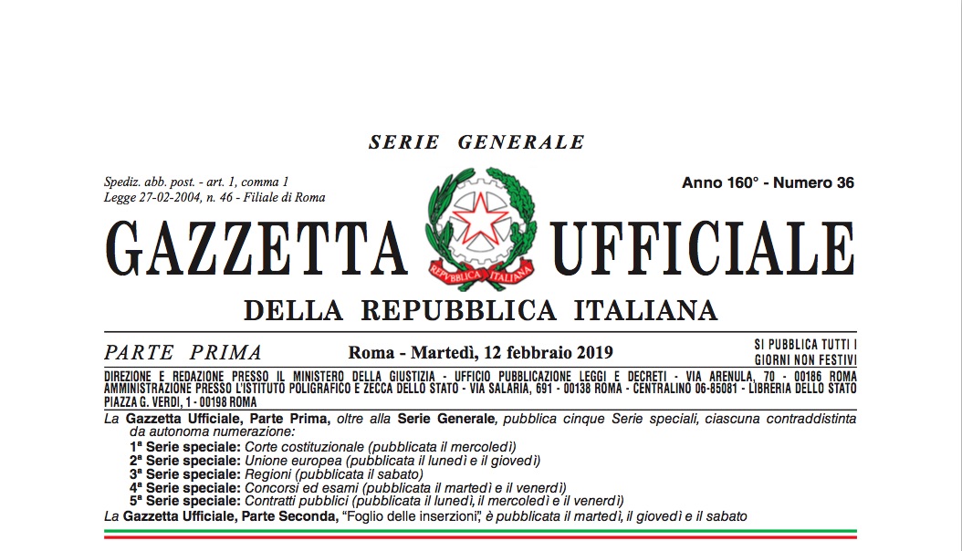 13 Febbraio 2019Circolare del Ministero Ambiente inerente Disposizioni attuative art. 26-bis L. 01/12/ 2018, n. 132 ” .