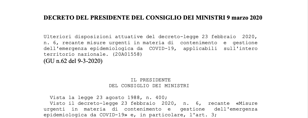 Qui il testo: DPCM-9-marzo-2020