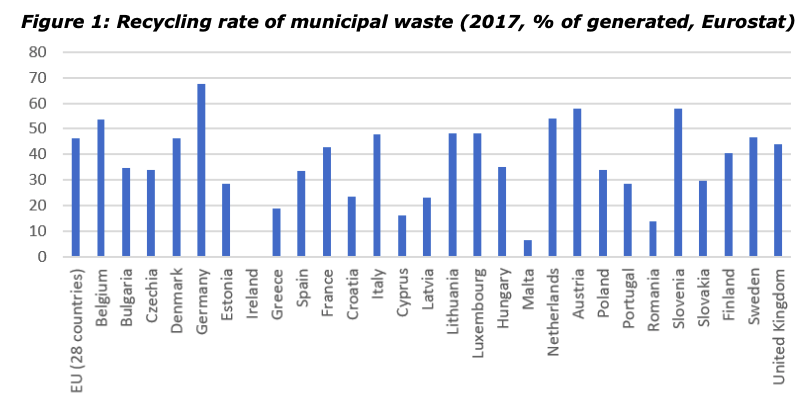 Ci sono grosse differenze tra gli Stati membri: la Germania è vicina al 70% di riciclo mentre la Romania sta poco oltre il 10% Il testo – che riporta anche una panoramica delle buone prassi e raccomandazioni per i sistemi di gestione dei rifiuti – vuole fornire un contributo per supportare gli Stati membri nel raggiungere gli obiettivi stabiliti nella nuova direttiva quadro sui rifiuti.