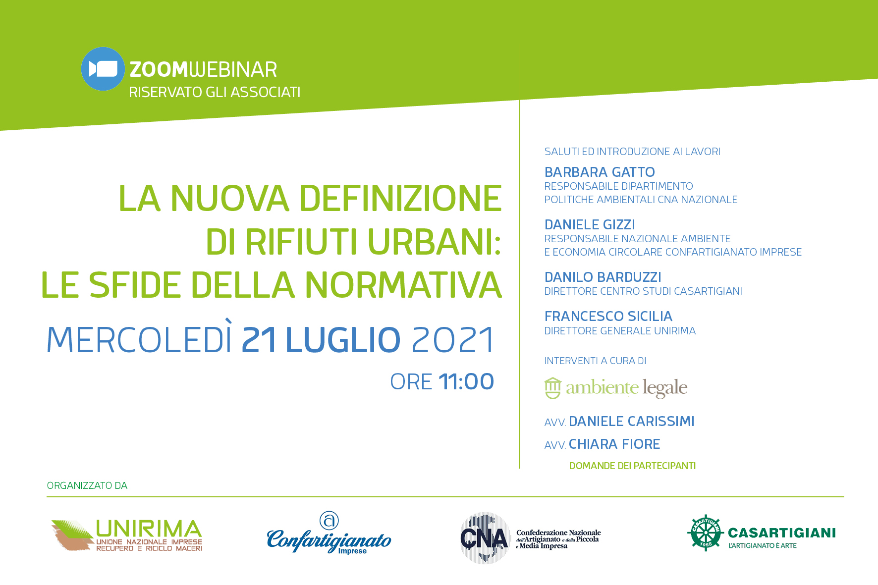 12 Luglio 2021Webinar 21 luglio ore 11.00 per illustrare il parere legale su D.lgs 116/2020