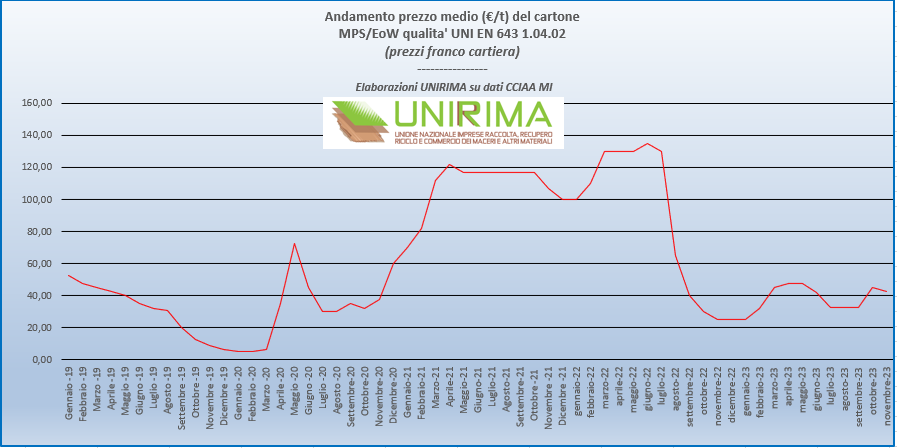 Andamento prezzi materia prima “carta da macero” – Grafici aggiornati a dicembre 2023