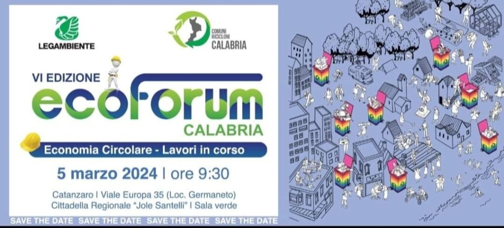 21 Febbraio 2024Si terrà martedì 5 marzo 2024 alle ore 9:30 la sesta edizione dell’Ecoforum Legambiente Calabria “Economia circolare – Lavori in corso” e la presentazione del dossier “Comuni Ricicloni 2024” presso la sala verde della cittadella regionale Jole Santelli, in Località Germaneto (Catanzaro).