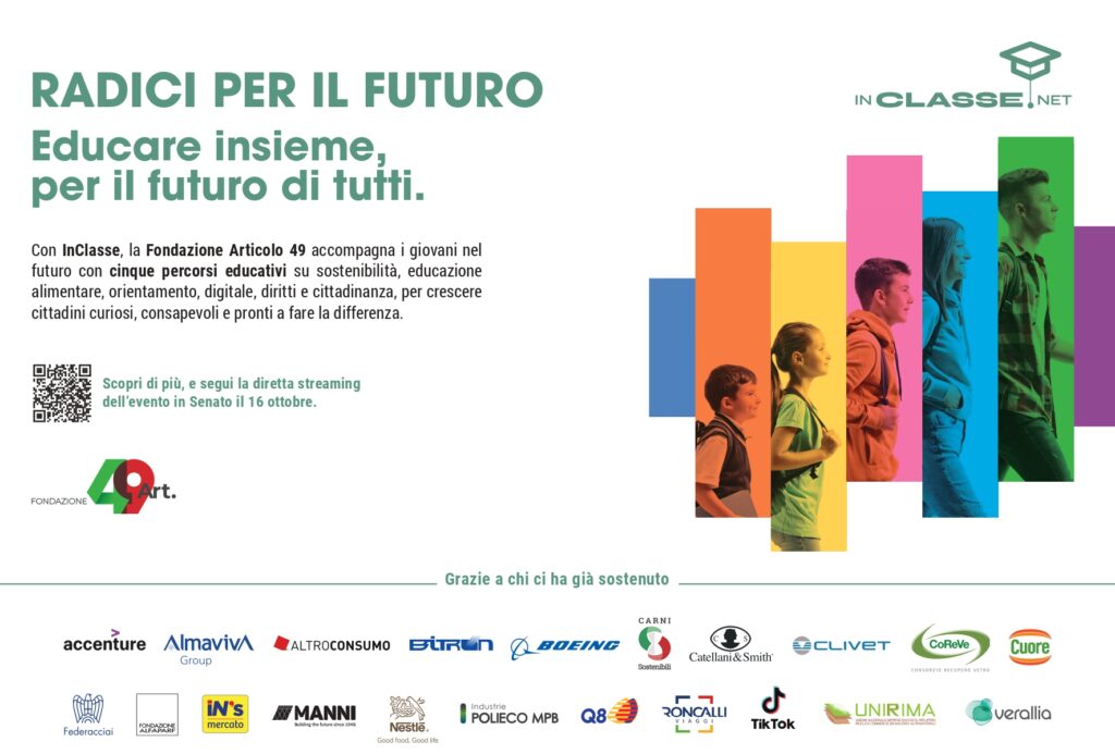 I progetti educativi InClasse, realizzati in collaborazione con il Parlamento europeo – Ufficio in Italia e con il patrocinio della Commissione europea e del Forum per lo sviluppo sostenibile e offerti gratuitamente alle scuole italiane, propongono approfondimenti su temi molto dibattuti nella scuola di oggi e nella scorsa edizione (anno scolastico 2024/25), hanno coinvolto circa 30.000 studenti in tutta Italia.