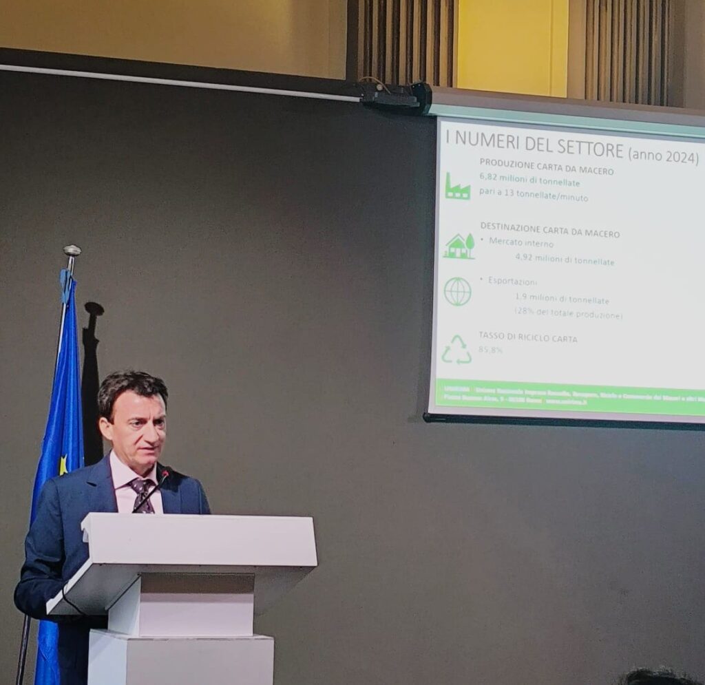 Dopo l’introduzione del Presidente di Unirima, Dott. Giuliano A. Tarallo, e il videomessaggio della Vicepresidente del Parlamento Europeo, On. Pina Picierno, il Direttore Generale, ing. Francesco Sicilia, ha presentato i numeri e i dati relativi al settore italiano della carta da macero.